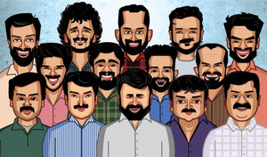 "A vibrant tribute to the timeless icons of Malayalam cinema. This exclusive pop art series reimagines legendary actors in bold colors and striking visuals, celebrating their unforgettable contributions to Mollywood’s golden legacy. From classic charm to iconic performances, these artworks capture the spirit of Kerala’s cinematic legends—keeping their aura alive for generations to admire."