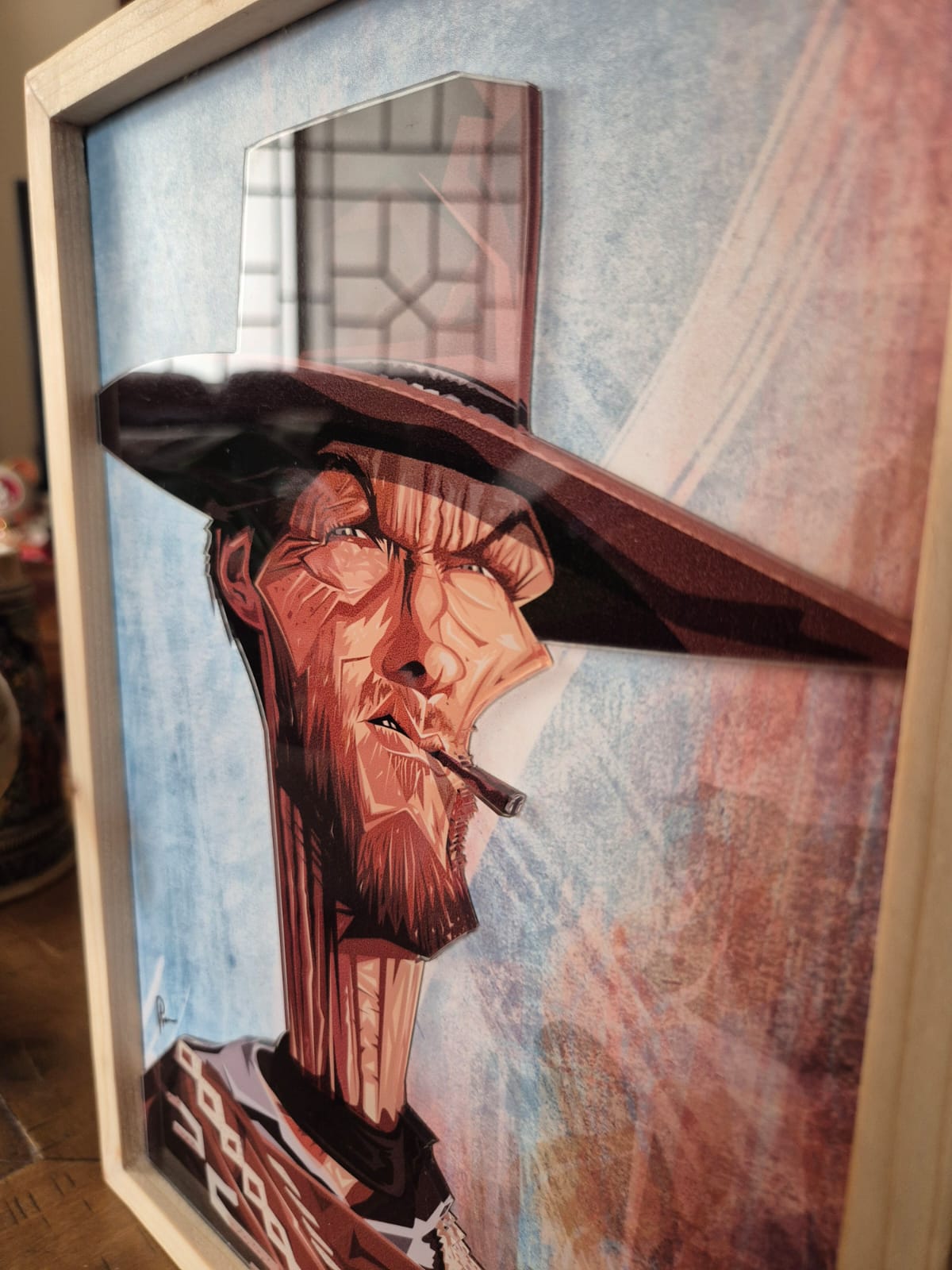 Old-school cool never dies — and Clint’s frame is proof. This acrylic piece captures the grit, the glare, and the gun-slinging swagger of Eastwood in full Graphicurry style. Printed with sharp colors and sealed in sleek acrylic, it’s an outlaw classic for your wall.