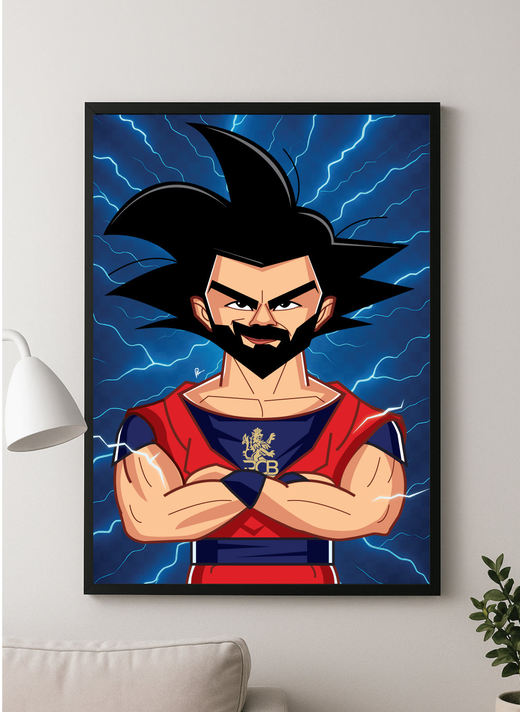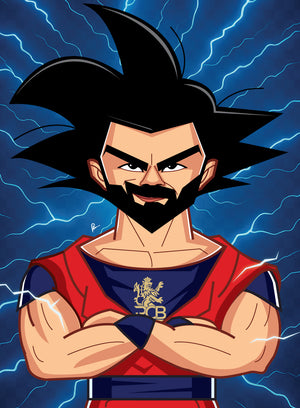 He’s got the RCB stare, the Saiyan hair, and enough energy to break scoreboards and scouters.