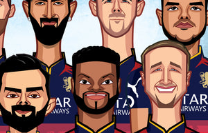It finally happened—and we’ve immortalized it in true Graphicurry fashion. Presenting our RCB Champions Mugshot – a bold, badass caricature tribute to the iconic squad that ended an 18-year wait and brought the cup home.