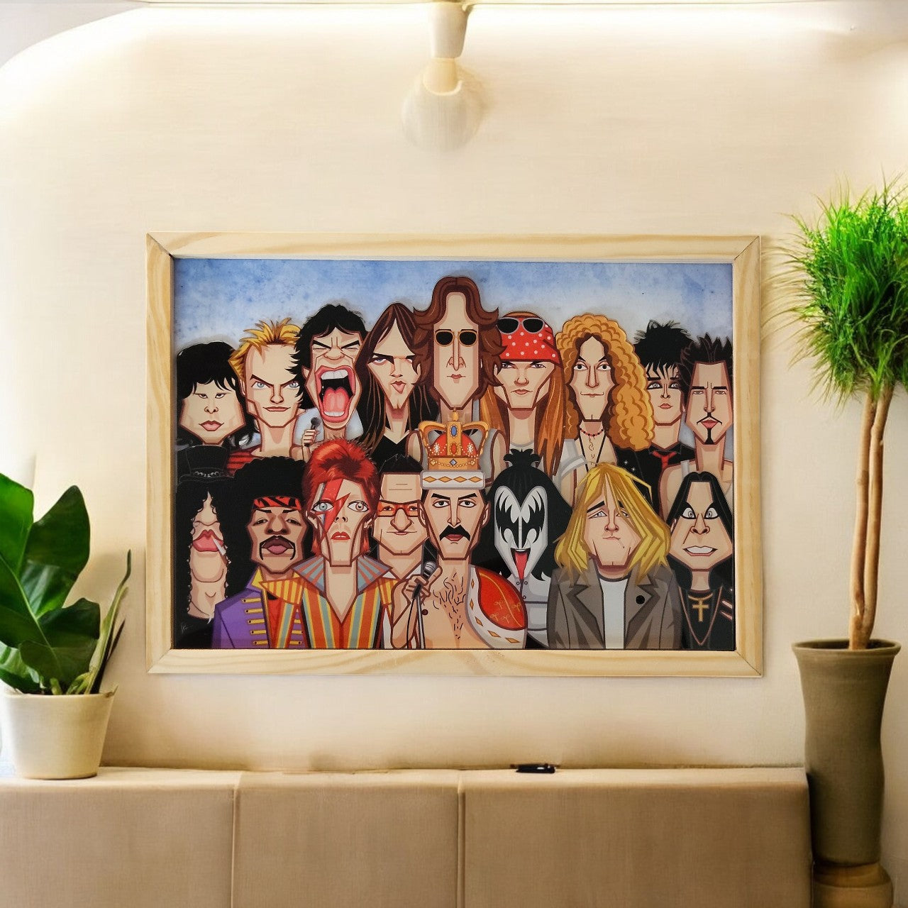 This is not just art — it's an encore. Our World of Rock collection features caricature tributes to the gods of guitars, the kings of chaos, and the faces that rewrote sound. From Freddie to Kurt, Jagger to Hendrix — these acrylic frames are designed to scream rock ’n’ roll...without a single speaker.
