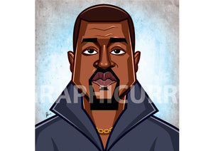 Kanye West caricature showcasing the influential rapper, producer, and designer in a stylish digital illustration reflecting his larger-than-life persona.