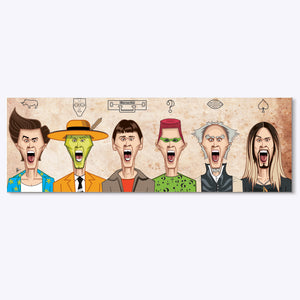 Carrey is known for his rubbery body movements, flexible facial expressions and for making us rolling on the floor with laughter! Exceptional Comedian, Actor And Producer. We have for you an insane Wall Art of Jim's Evolution in his best movies. This piece will make you laugh, we guarantee that!