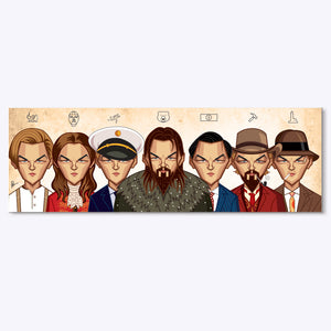 This exclusive artwork, meticulously crafted by Prasad Bhat from Graphicurry, offers a visual journey through the illustrious career of Leonardo DiCaprio. It's a detailed homage to the actor's most iconic roles, from the charming rogue of "Titanic" to the cunning financier in "The Wolf of Wall Street." Each character is brought to life with stunning clarity and artistic flair, capturing the essence of DiCaprio's versatility and depth as an actor. This piece is a must-have for cinema enthusiasts and DiCaprio fans alike, serving as a testament to the actor's enduring impact on the film industry. Whether displayed in your living room or office, it's bound to spark conversations and admiration, making it a perfect addition to any collection or a thoughtful gift for a movie buff.